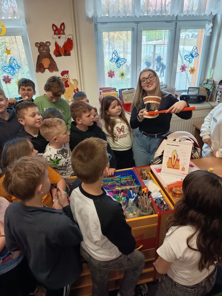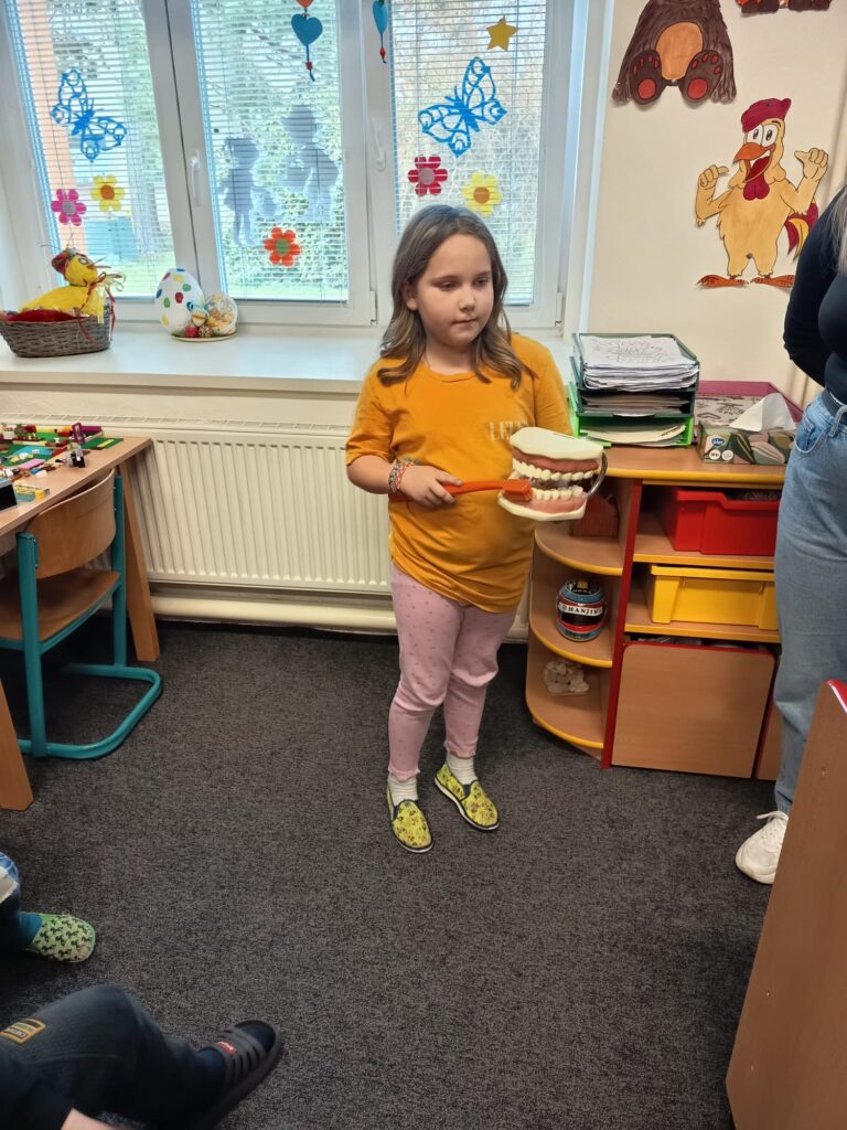 Do naší družiny přijela dentální hygienistka Klárka z ordinace Dentální hygiena Hokejka Šumperk, aby dětem ukázala, že péče o zuby může být i zábava.